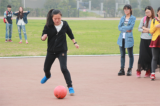 此次选拔活动得到了同学们的积极响应,选拔现场来了近40名13、14级女生,大家兴趣高涨,积极参与,展示自我运动才能,热情洋溢。院体育部部长杨刘进亲自示范踢球的动作要点,让大家享受足球带来的乐趣。
