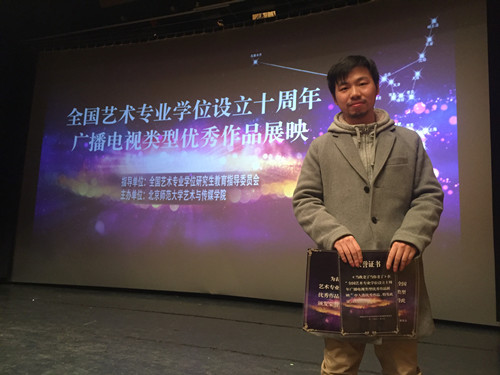 12月6日,我院数字媒体艺术系师生共同创作的作品《当我老了 当你老了》在北京师范大学举行的全国艺术专业学位设立十周年广播电视类型作品展颁奖典礼上展映,并荣获优秀奖。