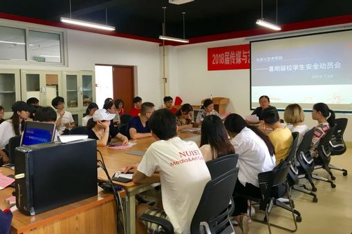 为做好2018年暑假留校学生管理工作,保证留校学生的学习、生活秩序,7月10日,传媒与艺术学院在逸夫楼N401召开院暑期留校学生安全动员会,院党委副书记詹筱茹、学办副主任关颖婧、辅导员俞世兰、鹿丰玲和74名留校学生参加了会议。