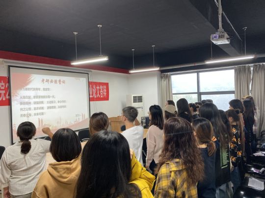 最后,院领导们对同学们的考研复习的步骤安排进行了答疑和讲解。并由学办主任关颖婧老师带领16级全体考研学子宣誓。