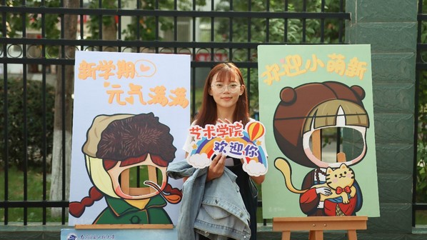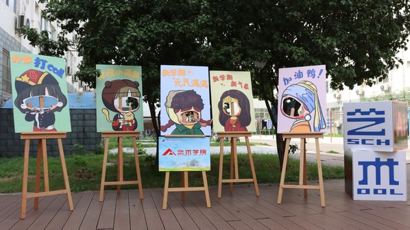 当然,不少新同学发现了艺术学院的亮点,那就是学院精心制作的立板啦!立牌以我们熟知的各类名画为蓝本,突显出艺术学院对新生的美好期望,不少同学也被立板吸引,纷纷在立板处进行了合影留念和打卡,为艺术学院的迎新增添了一份独有的光彩。