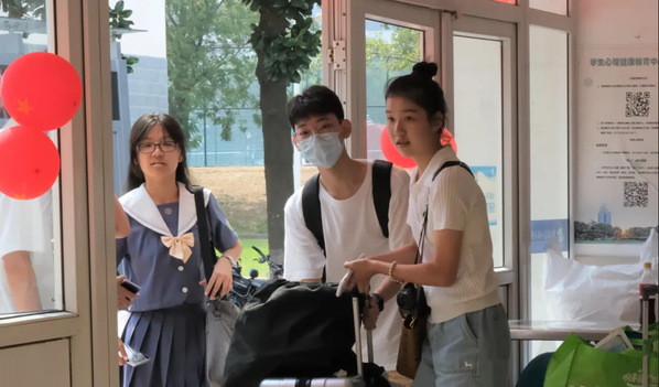 一年的时光转瞬而逝,曾经的21级萌新们如今成长为新生口中的学长学姐了。疫情之下,薪火相传,他们像曾经引导他们的学长学姐一样承担起志愿者的职责,奔波在新生宿舍楼之间。