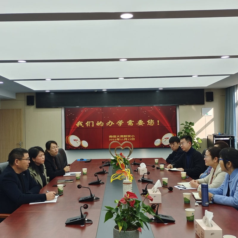 最后,双方来到三楼会议室开展调研座谈。南信大高新实小林莉校长以“五育并举、双减落地”为主题,力求培养精神富有,艺术富足的少年儿童为目标,从社团建设、课后辅导等艺术美育方面阐述学校发展需求。听取汇报后,詹筱茹副书记简要介绍南信大艺术学院,并表示将充分利用充沛的师资资源、品牌资源助力学校美育建设,巧妙融入志愿服务、课后辅导,提供顶流支持,为学校发展助力。林莉校长也表示今后艺术学院师范类学生提供实习机会,助力学生就业。
