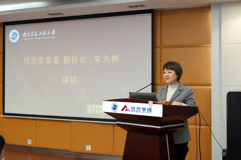 朱大梅在讲话中对艺术学院各项工作给予了高度评价。她指出,要坚持党对教育事业的全面系统整体的领导,始终把握前进的方向。要把政治领导、思想领导和组织领导相统一,落实到教学、科研、管理全过程各方面,形成一个全方位、多层次、立体式的落实党的领导的强大合力。要坚持以人才培养为中心,全面落实立德树人根本任务,紧贴国家的需求,实施三全育人,打好组合拳,构建思政育人的大格局。要坚持开放协同特色发展理念,推动学院事业高质量发展。准确定位、发挥优势、错位发展,做到人无我有,人有我优,人优我特。将艺术学科与我校的优势学科、办学特色相结合,积极推进交叉学科建设,为我校一流特色研究型大学建设作出更重要的贡献。