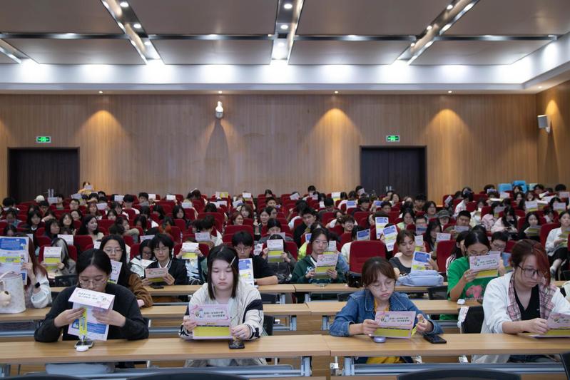 讲解过程中,王士荣不仅引用了扎实的医学理论作为支撑,还结合了校园内的真实案例,将原本较为抽象的健康知识转化为具体、生动、贴近学生生活的实例,使新生能够更直观地理解传染病防控的重要性。王士荣还亲自向同学们分发预防手册,引发了同学们的浓厚兴趣与热情回应。这份递到手边的关怀,不仅传递了知识,更如同一堂生动的健康启蒙课,让抽象的科普变得可感、可触,充满了人文关怀。