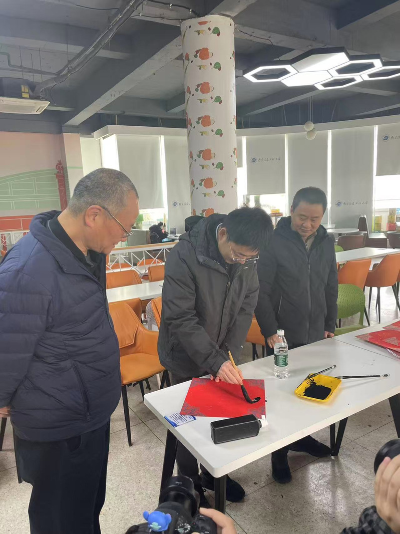 表彰仪式后,活动温馨氛围再升级,老师们现场挥毫送福。笔墨纸砚整齐铺开,“福”“吉祥如意”“阖家幸福” 等字样跃然纸上,笔锋遒劲有力,墨香中满含新春祝福。教职工们有序排队,手持崭新的红幅,脸上洋溢着期待与喜悦。“希望这份福气能伴随大家新的一年顺顺利利!”刘院长一边递出福字,一边与教职工亲切交流,一句句暖心问候、一幅幅吉祥福字,将学院的关怀与温暖传递到每位教职工心中。