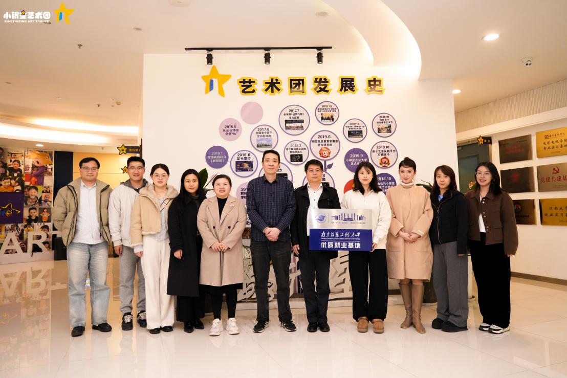 为进一步拓宽我院毕业生市场化就业渠道、精准对接校企人才供需,3月10日下午,艺术学院党委副书记、副院长李纯成带队,学办主任关颖婧及辅导员赵雅仪、曾博宇一行前往南京小银星艺术团开展实地考察与访企拓岗活动,围绕人才需求、实习就业等核心议题展开深入交流。