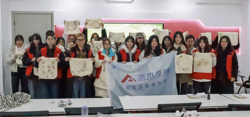 本次活动的内容是植物拓印环保袋DIY。活动现场,志愿者向参与者讲解拓印的基本方法和注意事项。学生根据个人喜好选择不同的花朵和叶片,通过敲打将植物纹理转印至环保袋表面,完成个性化创作。活动设置了暖心寄语环节,参与者在完成作品后,可在环保袋上书写文字,内容主要包括对教师的感谢或对个人践行环保理念的自我提醒。活动尾声,学院为每位参与者发放了罐罐盆栽作为纪念品,该环节旨在通过实物形式延续活动主题,鼓励参与者持续关注植物生长。