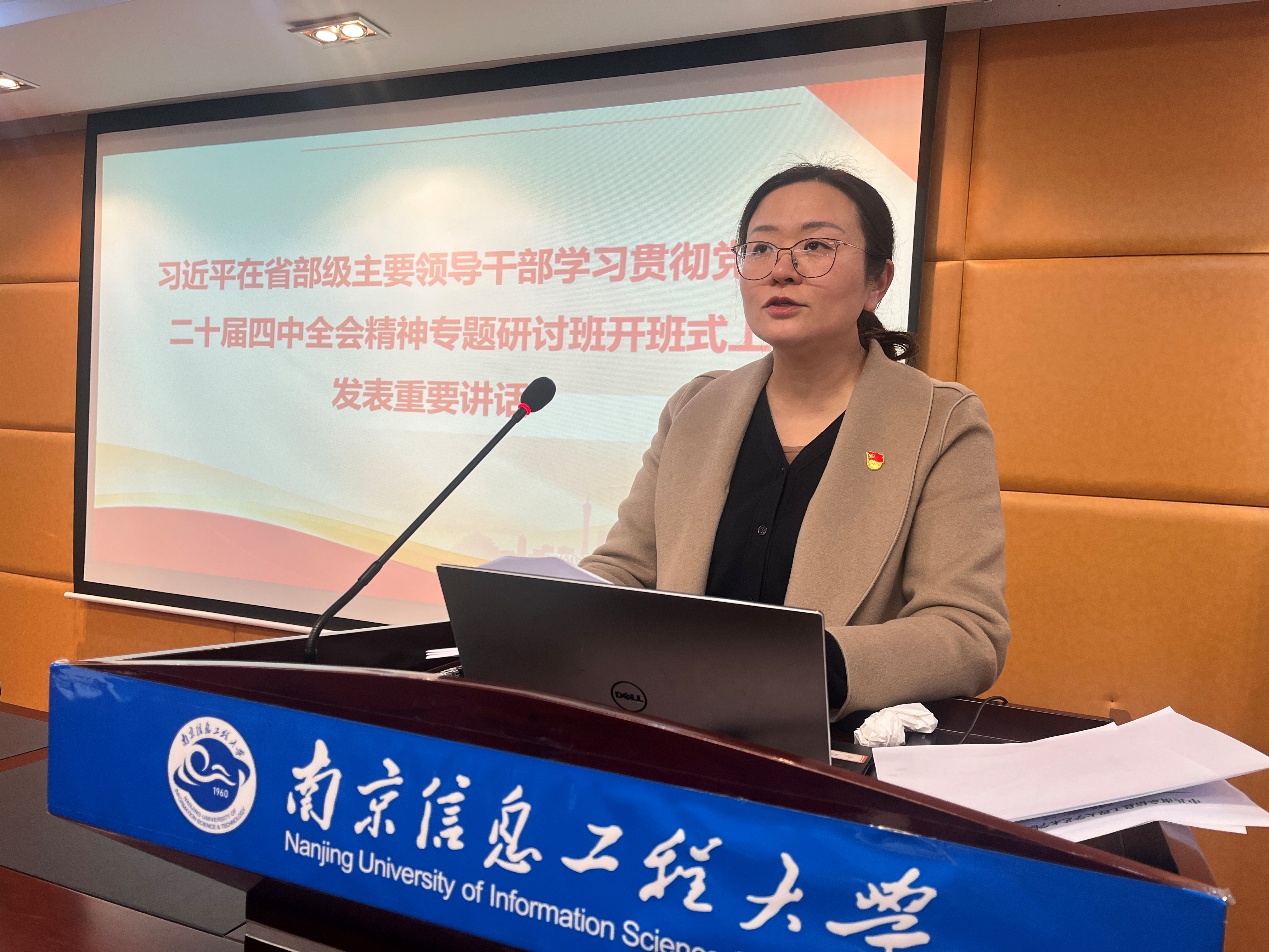 为深入学习贯彻党的二十届四中全会精神,切实把全院教职工的思想和行动统一到党中央决策部署上来,3月18日下午,艺术学院组织全体教职工开展党的二十届四中全会精神系列学习活动。院党委书记詹筱茹主讲“深入学习贯彻党的二十届四中全会精神 努力实现‘十五五’良好开局”专题党课。